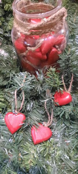 Cuori in legno decorati a mano disponibili in 4 fantasie
