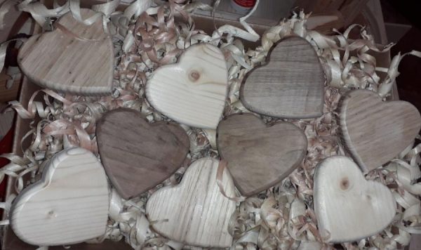 Cuori in legno studiati per sostituire le palline dell’albero di natale in plastica con qualcosa veramente green.