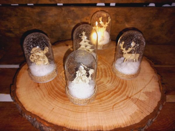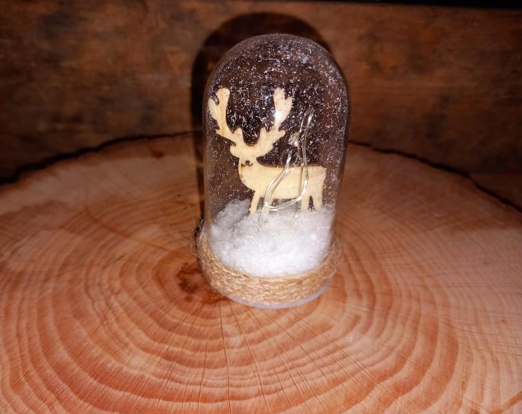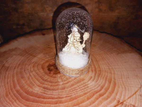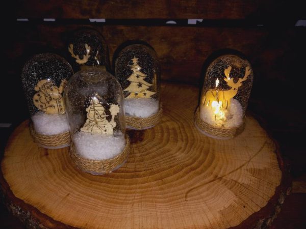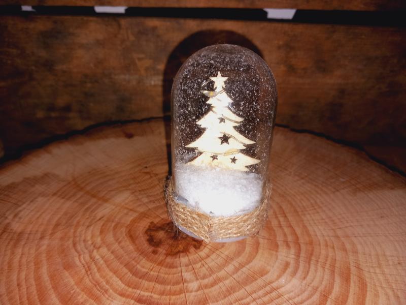 Decorazione d’appoggio boule de neige con dettaglio in legno completo di meccanismo luminoso, diametro 5