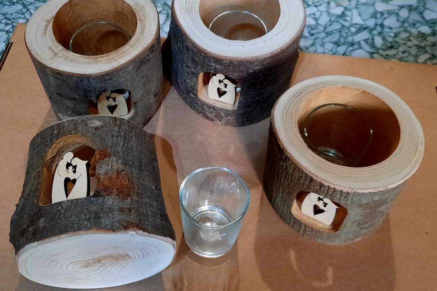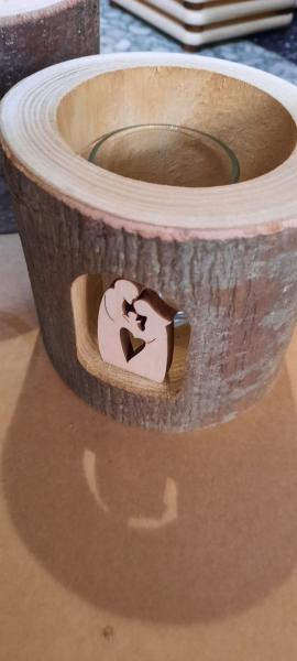 Lanterna in legno con dettaglio natività in taglio laser completa di bicchiere porta lumino
