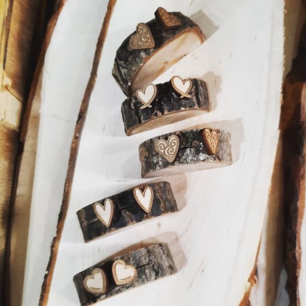 Etichette 000A, orecchini brillantino, orecchini cuore, orecchini da lobo, orecchini di legno