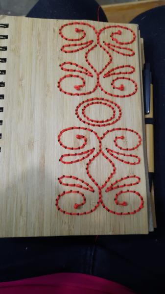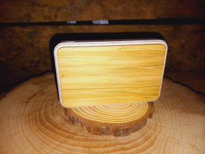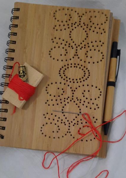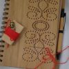 Raccoglitore ad anelli con copertine rigide in bambù, con portapenne.