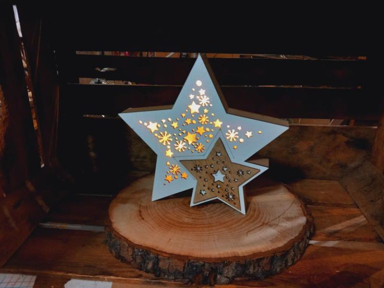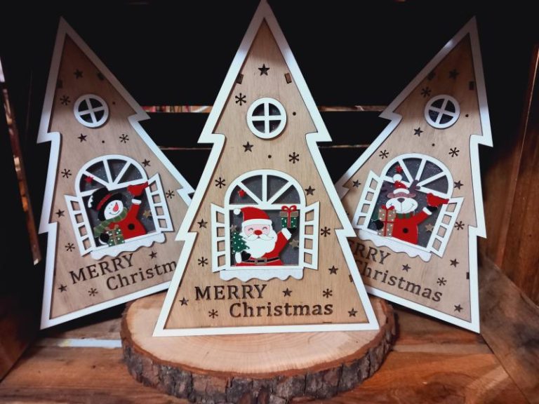 Decorazione in legno di balsa con dettaglio colorato e luci