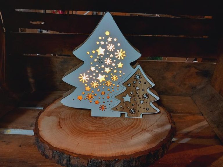 Pino stilizzato con meccanismo luminoso e dettagli colorati