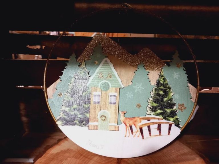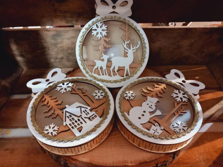 Lanterna in legno con dettaglio natività in taglio laser completa