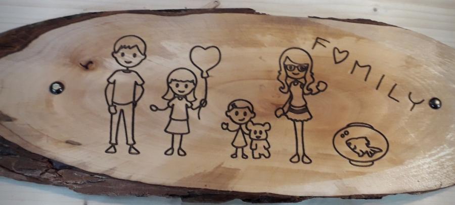 Fetta di Ontano grezza con incisione scritta scelta da voi o il disegno personalizzato della famiglia.
